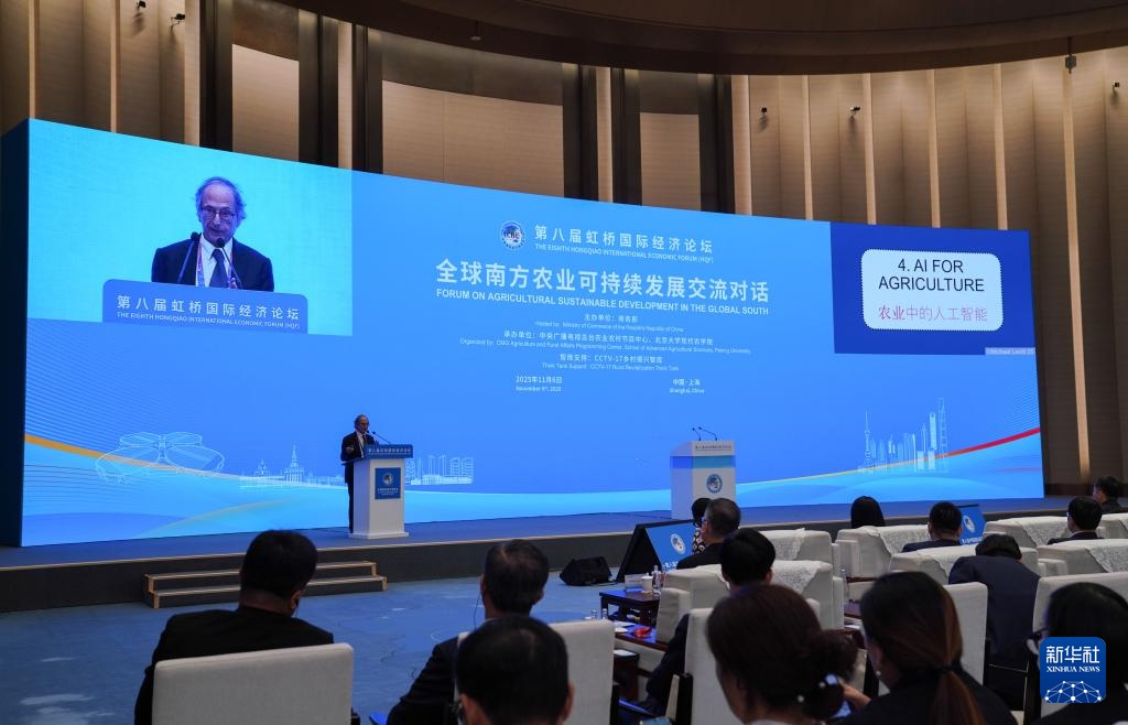 11月6日,第八届虹桥国际经济论坛“南方农业可持续发展交流与对话”分论坛在国家会展中心(上海)举行。这是诺贝尔化学奖获得者迈克尔·莱维特的主题演讲。新华社记者 范玉清 供图